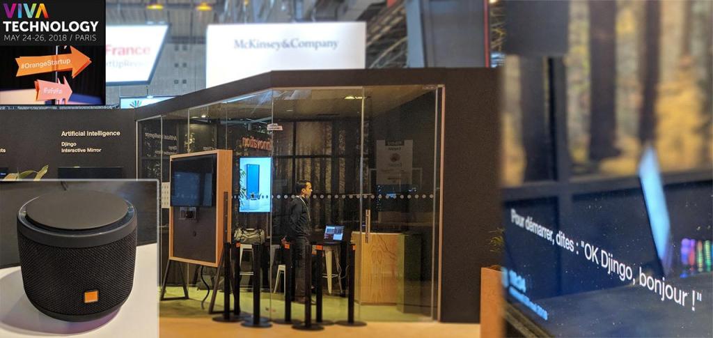 Le salon Vivatech 2018 ferme ses portes, et j’ai été très fier de contribuer avec VISEO au succès de Djingo, l’assistant vocal d’Orange, connecté à un Miroir Interactif. Orange permettait de tester sur son stand une expérience personnalisée: reconnaissance vocale, visuel, faciale, age, sentiments, etc …