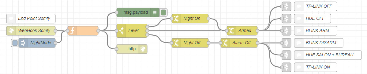 - Je n’ai pas trouvé de solution pour être notifié par les détecteurs de présence (PIR et Vibration) installés dans toutes l’habitation quelque soit l’état de l’alarme (même désarmée).