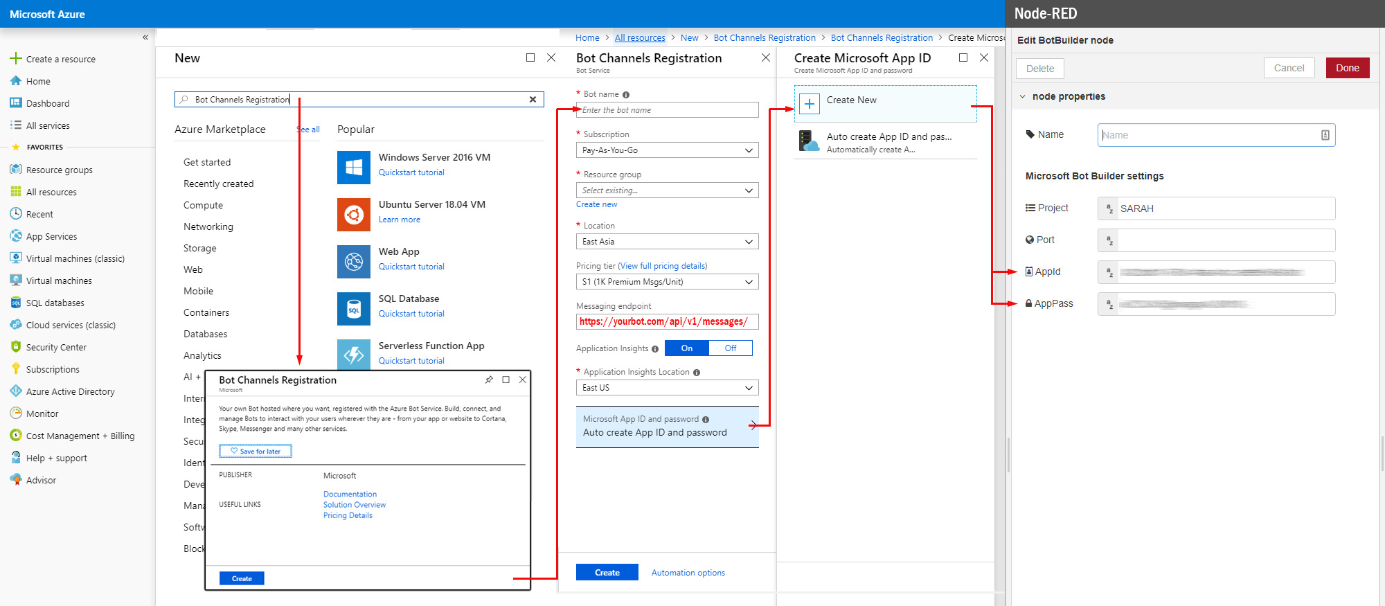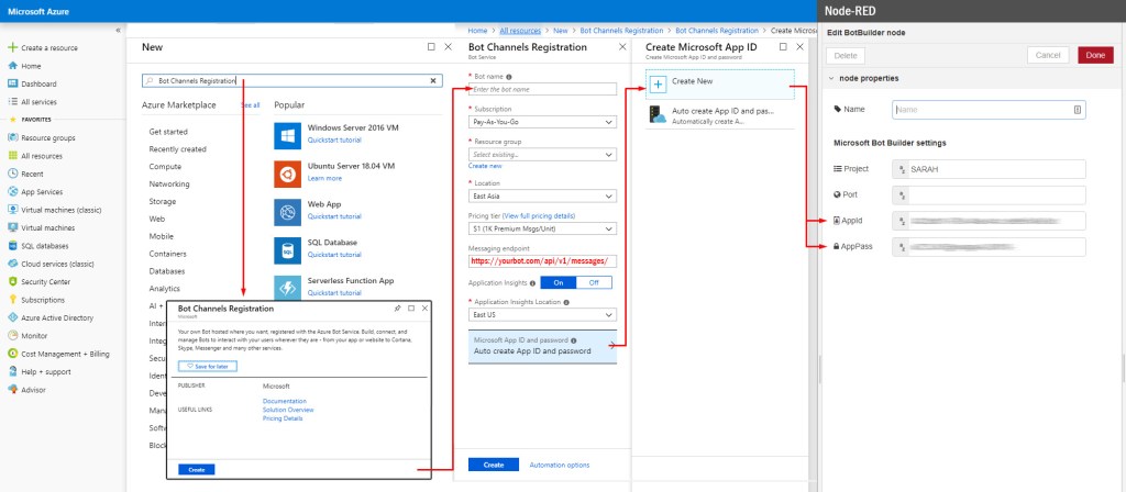La première étape consiste à se créer un Azure Bot Channel Registration qui jouera le rôle d’intermédiaire entre le monde des bots (Facebook, Slack, Webchat, etc … et SARAH)