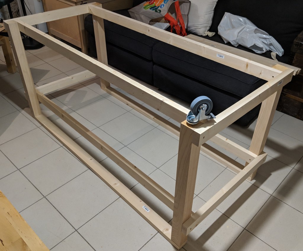 Bon en vrai, après avoir acheté l’engin hyper volumineux, je me suis rendu compte qu’il me fallait un établi pour ranger tous mes équipements 😉
