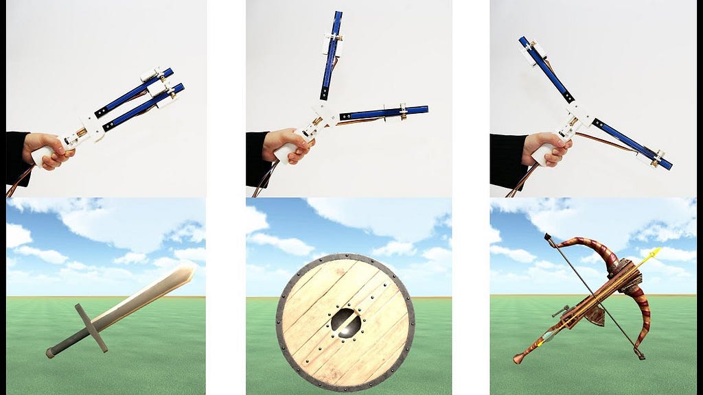 We humans, are able to estimate the shape of an object by feeling their mass properties while holding them in our hands without needing to see what they are. This sense doesn’t translate well in the VR world, as most controllers offer a static design, with most feedback being vibrational with no options to sense an objects weight or perceived shape. Now some engineers from the University of Tokyo have designed a VR controller that allows you to “feel” various objects in a virtual space by changing its shape.