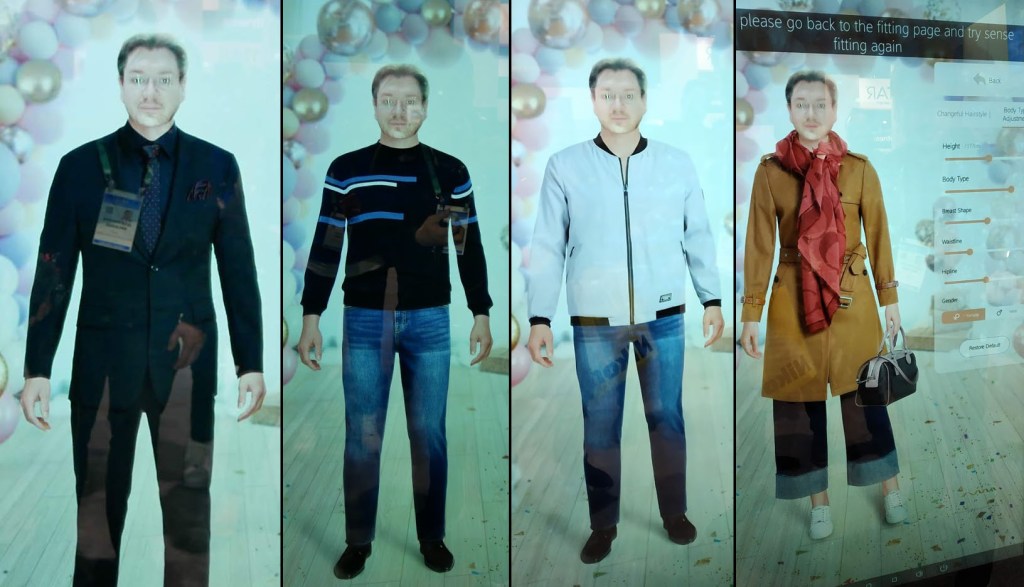 Lors du CES2020, plusieurs société dont HAIER proposaient un concept de fitting room. Avant de pouvoir choisir ses vêtements le dispositif impose la construction d’un avatar 3D.
