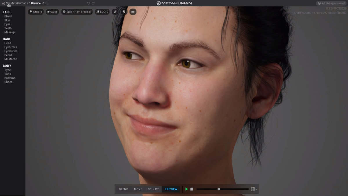 Epic Games launched MetaHuman Creator this week. It's a videogame character creation tool, essentially, but it's free, it isn't followed by a 140-hour RPG, it runs in your browser (actually in the omnipresent "cloud"), and it can export ready-to-use character models for Unreal Engine projects. To try it, you have to sign up here, and it might take a little while to get your invite.I'm probably never going to use one of my "MetaHumans" for an Unreal Engine project (which is all you're allowed to use them for), because that seems hard, but MetaHuman Creator itself is easy to use. And fun. Who doesn't love a good character creator? You can sculpt features by clicking and dragging parts of the face, as well as blend the features of included faces together, which is so effortless that it seems obvious—I'm sure the trigonometry under the hood is no big deal, right?There are also granular options for eyes (how do you feel about sclera vascularity?) and teeth (plaque slider confirmed), skin and makeup options, a handful of hairstyles to choose from, and a few facial hair options.