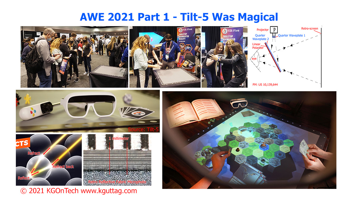 t was nice to get out and actually look through AR and VR displays at AWE 2021. I started to write about everything I saw at AWE, but to me Tilt-5 was such a standout that I decided to start with an article about my Tilt -5 experience and later follow up with several articles on other things I saw.