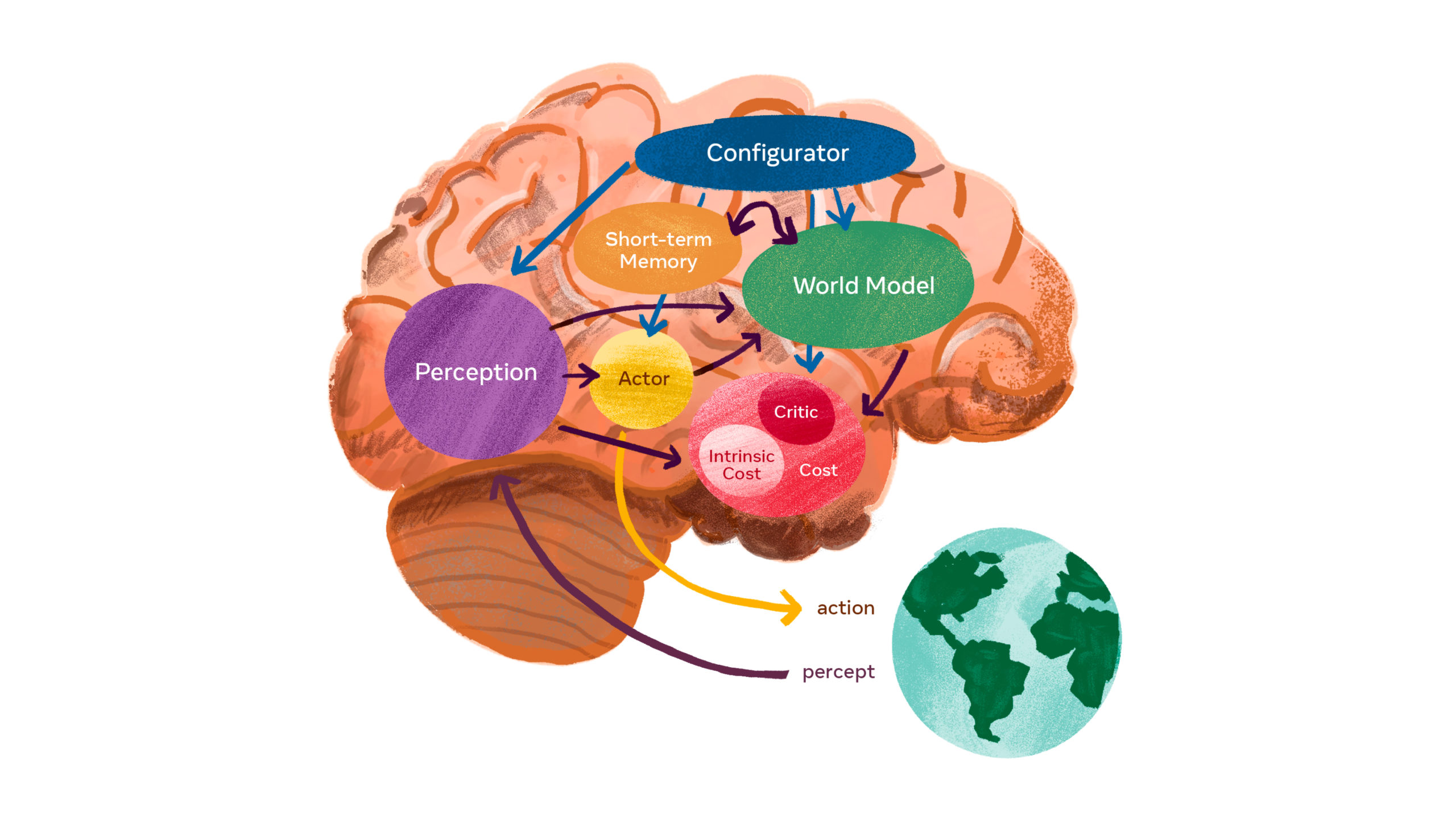 Intéressant la vision long terme de Yann LeCunet cette modélisation du cerveau
