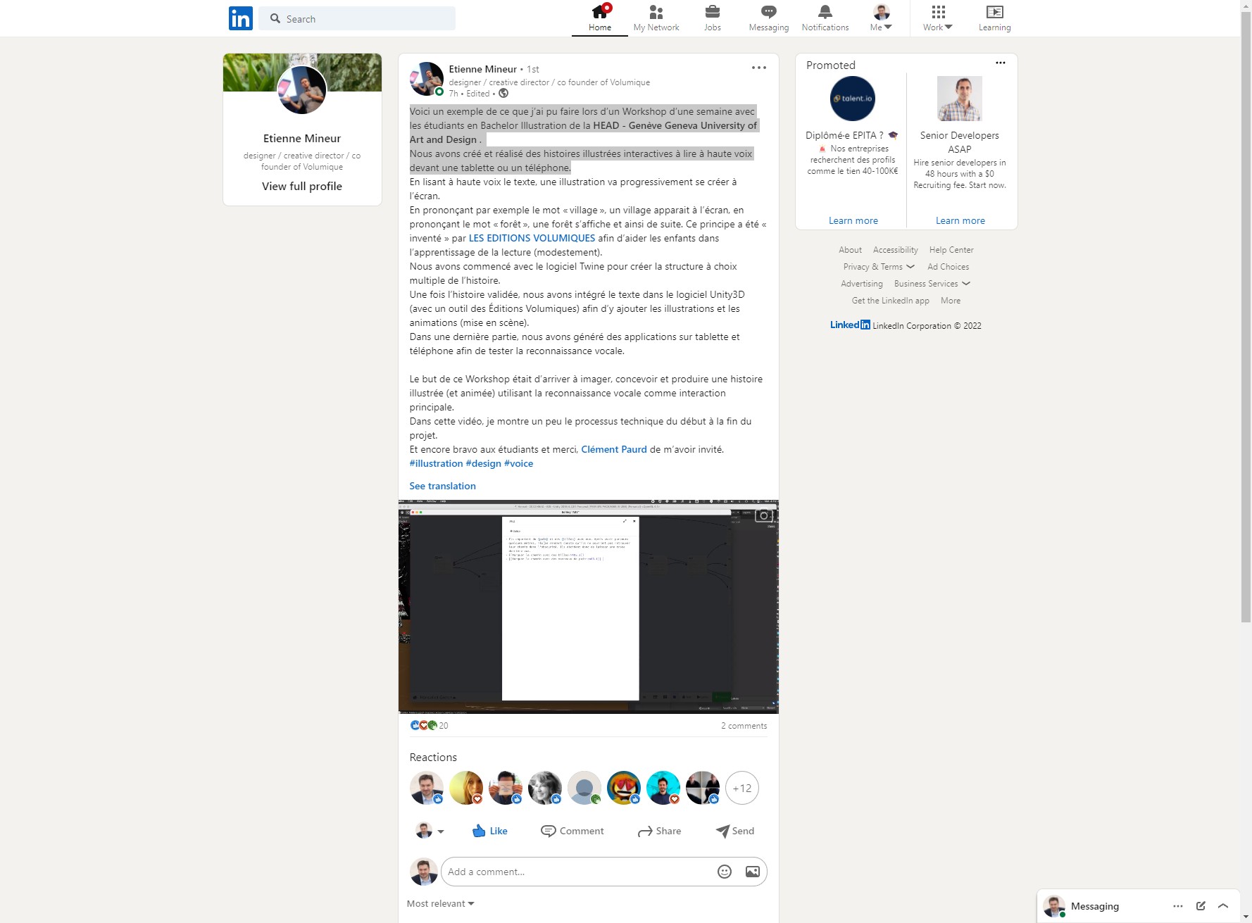 Voici un exemple de ce que j’ai pu faire lors d’un Workshop d’une semaine avec les étudiants en Bachelor Illustration de la HEAD – Genève Geneva University of Art and Design.
