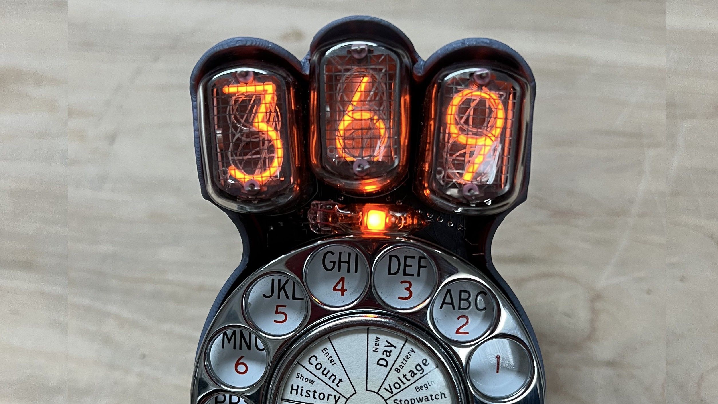 Rǒta has a few more tricks up its sleeve than simple counting. But really, those functions are just icing on the cake of how this little gadget looks. Rǒta was built around the unbeatable combination of a rotary telephone dial mechanism and a trio of Nixie tubes. The dial looks like it might have come from an old pay phone, all shiny and chrome and super robust looking. The Nixies sit atop the dial on a custom PCB, and everything, including the high-voltage supply for the tubes, is enclosed in a 3D printed case with a little bit of a Fallout vibe.