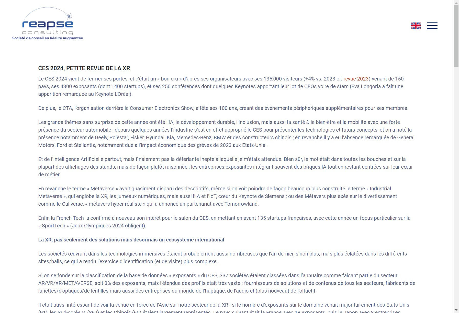 Le CES 2024 a été marqué par une forte présence de l'intelligence artificielle et du secteur automobile. La XR (réalité mixte) a également été mise en avant avec une présence importante des sociétés asiatiques. Les accessoires haptiques et les solutions olfactives ont été parmi les tendances émergentes. Des entreprises comme Xreal, Nimo, TCL, NRMYW et Vuzix ont présenté de nouvelles lunettes connectées. Des accessoires innovants ont été présentés, comme les gants haptiques PalmPlug et Afférence, le 'mouthwear' Augmental, et des solutions olfactives comme Aromajoin et Iromascents. La French Tech a également été bien représentée avec 135 startups françaises présentes.