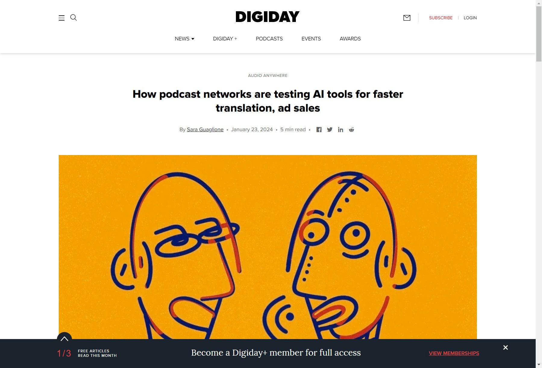Podcast networks, like Acast, iHeartMedia and Spotify, are also testing these tools to increase their outreach to prospective clients, expand the range of shows that fit a buyer’s brief and translate shows into different languages.
