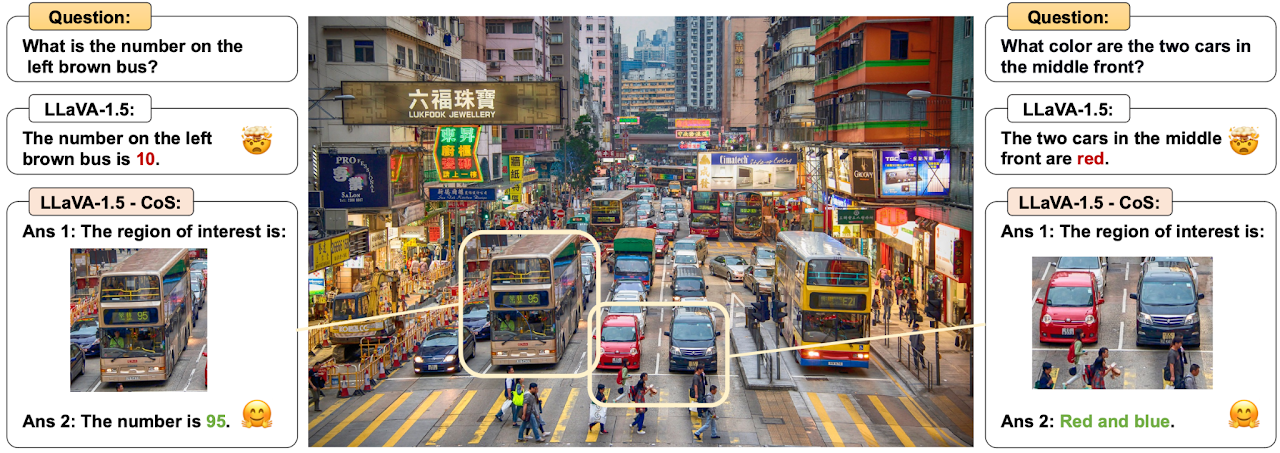 Chain-of-Spot (CoS) est une nouvelle approche qui améliore l'extraction des caractéristiques en se concentrant sur les régions d'intérêt clés dans l'image, correspondant aux questions posées ou aux instructions données. Cette technique permet aux modèles de vision et de langage d'accéder à des informations visuelles plus détaillées sans altérer la résolution de l'image d'origine, offrant ainsi des caractéristiques d'image multi-granularité. Des expériences quantitatives et qualitatives montrent la supériorité de cette méthode par rapport aux modèles existants. Des visualisations sont également utilisées pour illustrer l'efficacité de l'approche Chain-of-Spot dans l'identification des régions d'intérêt pertinentes pour les réponses aux requêtes dans les images, améliorant ainsi les performances globales dans les tâches multimodales.