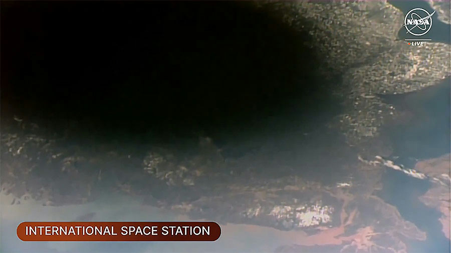 La Station spatiale internationale a traversé l'ombre de la Lune pendant l'éclipse solaire, offrant à l'équipage de l'Expédition 71 l'occasion de l'observer. Pendant ce temps, les membres de l'équipage ont effectué des transferts de cargaison, entretenu les combinaisons spatiales et mené des recherches en microgravité. Les fenêtres de la coupole étaient ouvertes et les astronautes ont pu photographier et filmer l'ombre de la Lune sur Terre. Avant les activités liées à l'éclipse, les membres de l'équipage ont effectué différentes tâches d'entretien et de préparation pour des expériences scientifiques à venir.